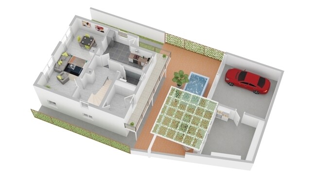 Die eigenen vier Wände sind im Idealfall ein Rückzugsort, der behütet und behaglich ist. Dieses adrette Einfamilienhaus bietet dafür wegen seines guten Zuschnitts alle Voraussetzungen. Drei Funktionsräume, etwa zum Schlafen oder Arbeiten liegen im Erdgeschoss. Dies bringt viel Raum für den großen und hellen Wohnbereich in der Etage darüber. Eine Schiebetür öffnet ihn zur Küche, in der auch ein Esstisch für die ganze Familie seinen Platz findet.