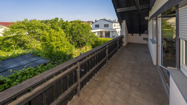lichtdurchfluteten Wohnzimmer und direktem Zugang zu einem überdachten Balkon – hier lässt