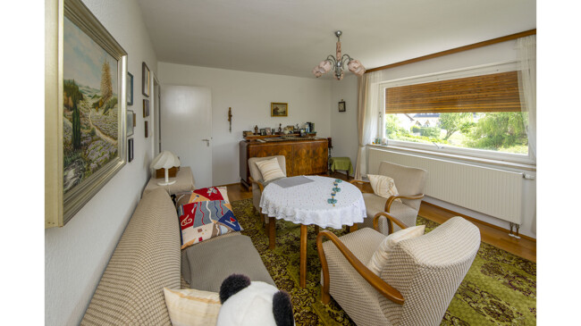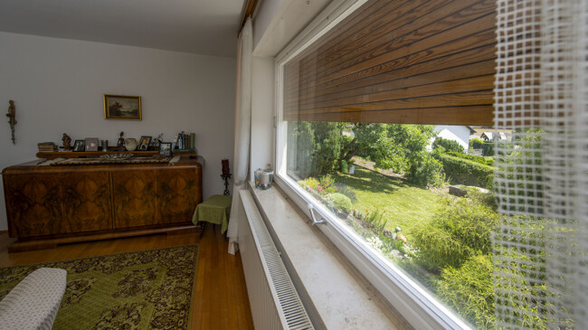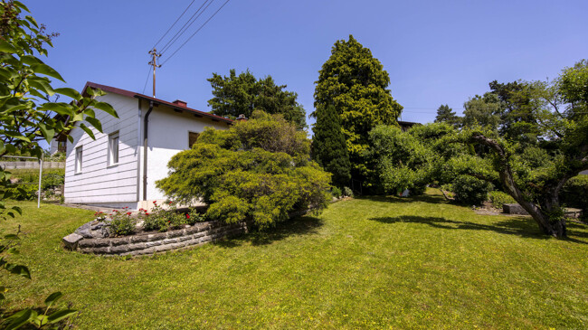 Zugegeben, das sehr gepflegte Haus mit seinen drei Zimmern ist nicht sehr groß, aber gleichwohl weit mehr als nur „3ZKB“: Die großen Fenster lassen viel Licht in die Räume, die Küche ist so geräumig, dass dort ein Esstisch für gemeinsame Mahlzeiten Platz findet, und in einem großen Wirtschaftsraum im Souterrain lässt sich alles verstauen, was nicht nach ‚oben‘ gehört. Eines zeichnet die Immobile in ruhiger Ortsrandlage aber vor allem aus: Ein herausragend schöner und großartig gepflegter Garten erweitert den Lebensraum hinaus ins Freie. Dort spenden Bäume im Sommer Schatten, viele Blumen bis hin zu Rosen erfreuen das Auge und ein Kräuter- und Gemüsebeet sorgt für die gesunde Bereicherung der eigenen Küche. Das ist doch schon mal was!